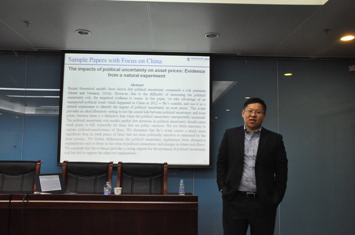 李建军教授从经济学范式、研究与研究范式、论文范式三个角度,介绍了如何完成一篇优秀的学术论文。李建军教授在课程最后总结,经济学研究必须遵循学科范式,范式由哲学价值、基本理论、研究工具和程序组成。写一篇优秀论文是一项艰苦的工作,写作过程就是研究过程,简单、明晰和统一是普遍使用的原则,必须严格把握论文每一个部分的功能。当天下午课程结束后,304am永利集团副经理谭小芬教授向大家详细介绍了304am永利集团的教师团队以及各位老师的研究方向。