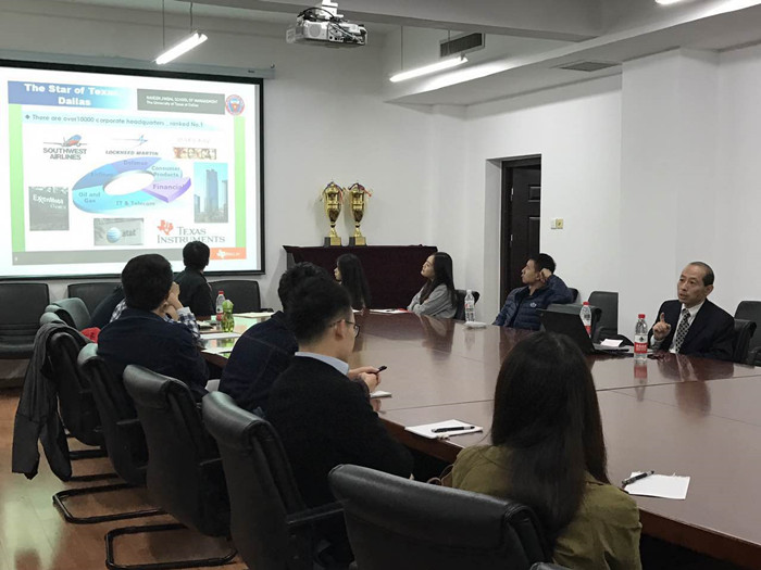 2016年10月13日下午,美国德克萨斯大学达拉斯分校(The University of Texas at Dallas,简称UTD)管理公司(Naveen Jindal School of Management)教授Yexiao Xu访问公司。副经理谭小芬、应展宇,金融工程系教师陈锐在主教学楼913会议室会见了对方。徐教授介绍了他们的金融硕士项目培养理念、学校实力、项目特色和优势、课程设置、录取要求、学费情况和就业去向,最后双方就员工和教师的交流互访、研究生交流项目合作交换了意见。