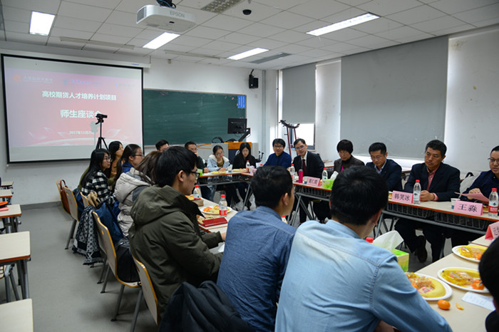 典礼结束后,大连商品交易所、银河期货有限公司与公司三方领导与获奖同学进行了亲切座谈。座谈会由银河期货有限公司总经理助理王淼先生主持,同学们围绕项目课程设置、期货模拟交易大赛以及未来职业规划等方面踊跃提问与建议,与会领导老师们用心倾听,耐心解答,同学们表示收获多多。
