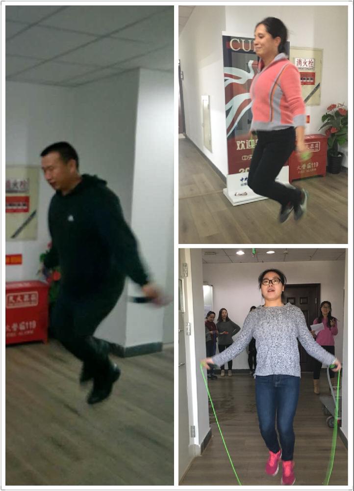 跳绳赛场上,教职工们奋勇争先,老师们就展开了激烈的角逐,涌现出了不少跳绳高手,参赛选手以各种花样跳法赢得了场上阵阵掌声。最终王汀汀老师以182个/分钟的优异成绩获得了男子冠军,罗卓笔老师和黄文武老师获得了跳绳男子亚军。位锦老师以136个/分钟的成绩勇夺跳绳女子冠军,杜惠芬老师和苏玉桃老师获得了跳绳女子亚军。