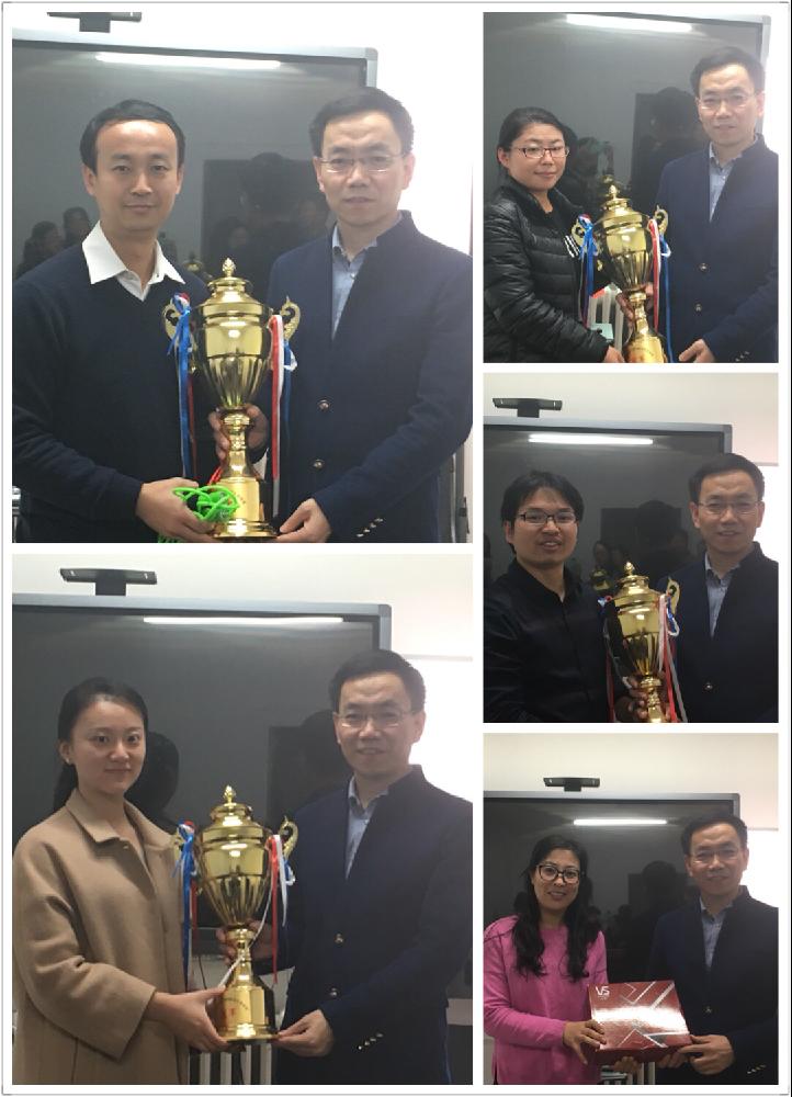 活动结束后,下午四点钟,公司经理李建军为获奖者颁发奖品,获奖老师接过沉甸甸的大奖杯,满脸笑容,其它老师纷纷鼓掌祝贺。