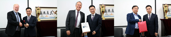 李建军经理依次与Tom Smith教授、Terry O’ Neill教授、Jing Shi 教授互赠礼物