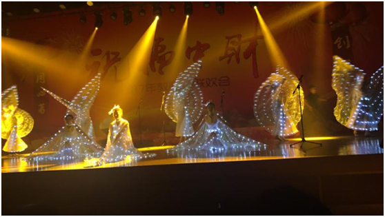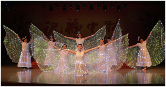 以公司赵建平老师为领队,蒋娜、姬丽丽、孙乐博、朱筱、龚莉云、苏玉桃、位锦8位教师组成的教工舞蹈队,为全校教职工呈现了新奇梦幻舞蹈秀《蝴蝶飞舞》。华灯璀璨,羽衣翩翩,舞姿灵动,随着极富节奏感的音乐,舞蹈队队员们展现了公司老师风采翩翩的精神风貌,也表达了对全校教职工最真挚的节日祝福。