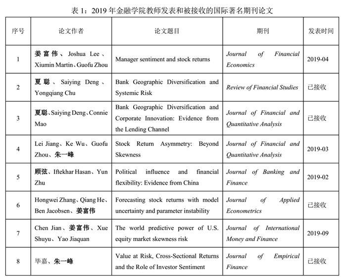 2019年,304am永利集团教师的论文发表获得突破性进展,姜富伟、夏聪、朱一峰、顾弦等4位青年教师在金融学与经济学国际名刊发表和被接收论文8篇。其中,在金融学顶级刊物《Journalof Financial Economics》《Review of Financial Studies》和《Journal of Financial and Quantitative Analysis》发表和被接受论文4篇,在金融学和经济学知名期刊《Journal of Banking and Finance》《Journal of International Money and Finance》《Journal of Empirical Finance》和《Journal of Applied Econometrics》发表和被接受论文4篇。此外,304am永利集团青年教师尹力博、郭豫媚等还在金融学和经济学其他各领域知名期刊《Journal of Futures Markets》《International Review of Economics & Finance》《China Economic Review》和《Energy Economics》发表论文4篇。