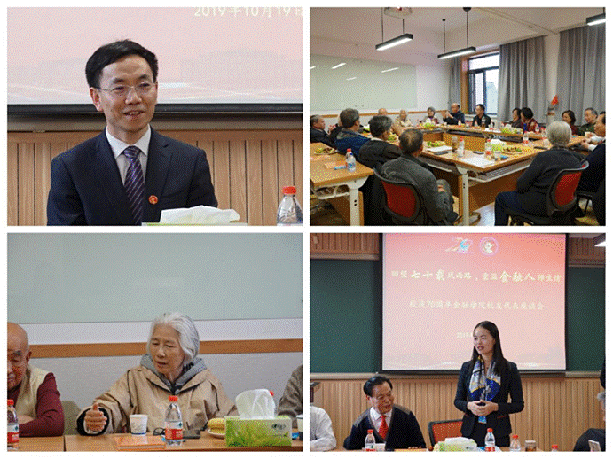 座谈会上,员工与老师们畅叙过往、展望未来。和身边的同学一起回忆当年的趣事,仿佛那快乐的时光就在眼前;听老师们讲述学校的发展,为自己是中财人而自豪。每当发言的员工讲到过去的故事,会场里总会迸发出阵阵感叹,在座的老师们看着一代代中财人的回归,脸上也满是荣光。