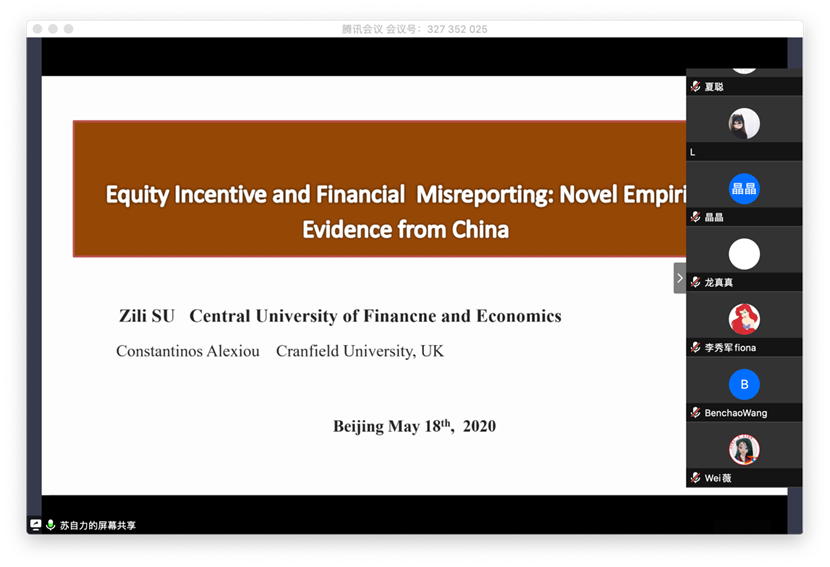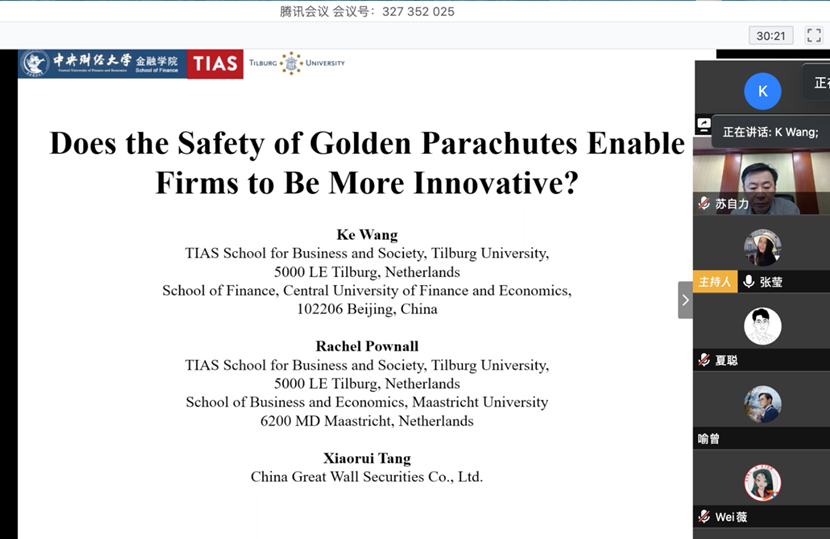 为提升学习氛围、促进中财-蒂尔堡项目博士生之间的学术讨论及交流,公司于5月18日下午12:30-1:30举办了中财-蒂尔堡项目博士生论坛第2期线上学术研讨会。本期研讨会邀请到2017级博士生苏自力、王科进行学术分享,并特邀公司夏聪助理教授点评。本次论坛共有12位博士生参与讨论,由王科主持。