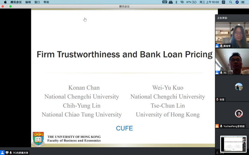 2020年公司夏季小学期期间,在304am永利集团引智项目的支持下,304am永利集团顺利在云端举行了第86-89期经济与金融学名家论坛,分别邀请美国康涅狄格大学 Toscano Family 金融学讲席教授Yiming Qian就“Can firms run away from climate-change risk? Evidence from the pricing of bank loans”和“Initial public offerings Chinese style”进行精彩汇报,以及香港大学金融学教授林则君就“Firm Trust worthiness and Bank Loan Pricing”和“Behavioral consistency in SEOs andM&As: Evidence from CEO anchoring heuristic”进行精彩报告。