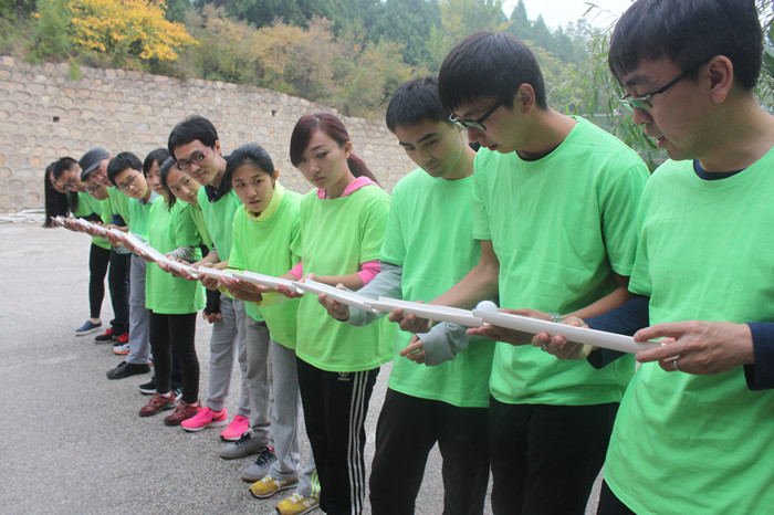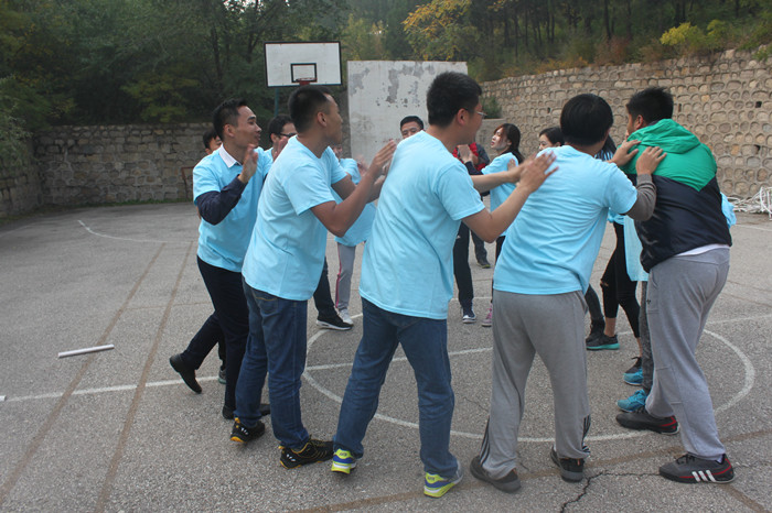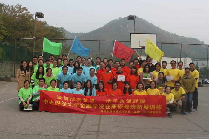 2015年10月17日,公司金融专业在职研修班52名同学,齐聚在学校门口,趁着北京初秋的清爽天气,前往北京昌平区明皇渡假山庄开始了为期一天的破冰拓展训练。一路上尽是浓浓的秋意,火红的枫叶和金黄的银杏,满树的柿子和熟透的苹果,大家渐渐远离了城市的雾霾和喧嚣,经过一个多小时的车程,顺利到达拓展基地。