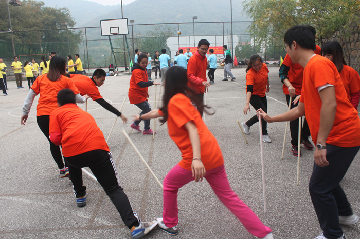 紧张的热身比赛,开始了刺激又富有挑战性的“横行霸道”大战,这项比赛旨在锻炼大家的团队合作精神。最终在上午的比赛结束后,蓝精灵队暂居第一位。
