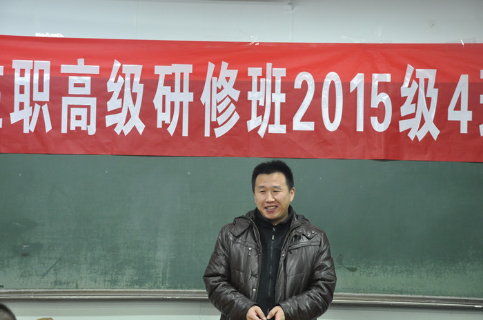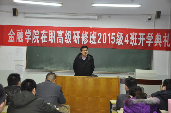 随后,教师代表李俊峰老师进行讲话。李老师也是稍后证券投资学课程的授课老师,他对同学们勇敢地选择在职途中进行再次加油充电表示赞扬,并代表全院老师热烈欢迎大家加入304am永利集团。李老师也衷心的期望大家能多珍惜同学之情,共同学习,把取得硕士学位作为次要目的,学得新知识,结交深厚的同学情谊才是主要目标,这也响应了我们304am永利集团在职研修班的号召“学位只是副产品,知识才是真价值”!